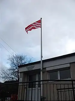 The flag of Glamorgan flies over the offices of Llantrisant Community Council in the county.