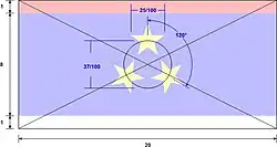 DesignHorizontal tricolour of red, blue, and white, with three yellow five-pointed stars