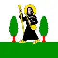 The coat of arms and the flag was used for the Schützenhaus as early as 1843. The image refers to the church patroness St. Ida of Toggenburg, whose attribute is the deer with twelve light-bearing antler ends.