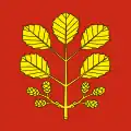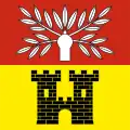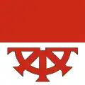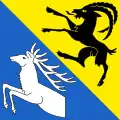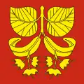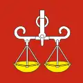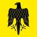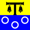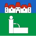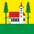 The coat of arms and the flag can be traced back to 1684. The left half of the shield with the three red tinctures is intended to commemorate the three village fires of 1400, 1693 and 1799, while the black eagle in yellow indicates the former imperial affiliation.[14]
