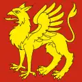 The coat of arms and the flag belongs to the "von Amsolt" family.