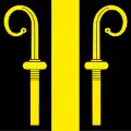 2. Sinister, azure, a white shield (containing a red cross) attached to a gold crozier.