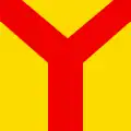 The bend represents the Linth river. The three yellow stars represents Ennenda, Netstal and Riedern, while the black and white star represents Glarus. Both the coat of arms and the flag combine the symbols of all the former municipalities.