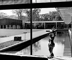 In 1953 the museum reopened in the 18th-century Haus Riensberg, the main house of the Riensberg estate, and in 1959 the foundation stone of a new building was laid: the first new building of any state museum in the Federal Republic since the war. Designed by Heinrich Bartmann and Reinhold Kargel of Darmstadt, the new complex was dedicated in 1964. In classic modern style, respectfully integrated into the landscape and with ample use of glass to emphasise views from the inside out, this main building is now held to be one of Bremen's most outstanding 20th-century buildings. In 1974 the Association of German Architects called it "one of the most beautiful museum facilities on the continent".