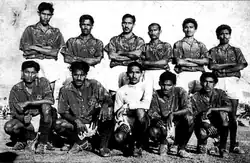 With Dacca's football scene dominated by West Pakistani players, the EPSF introduced regulations limiting clubs to a maximum of five non-Bengali players per league game. Clubs like Azad SC, Rahmatganj MFS, and Police AC prioritized Bengali players, yet over the two decades following Pakistan's creation, only 24 Bengalis represented the national team.[23] The highlight came at the 1958 Tokyo Asian Games, where Pakistan was captained by Nabi Chowdhury from Feni, and featured five other Bengali players. Besides the National Championship, the East Pakistan football team also played unofficial international matches, including a heavy 1–11 defeat to China on 24 January 1963 in Dacca.[24][25] In 1961, they faced Burma in two warm-up matches in Dacca and Chittagong, suffering similarly lopsided losses.[26] On 9 June 1963, the East Pakistan Sports Board XI played an exhibition match against Bundesliga club Fortuna Düsseldorf, who had an unplanned stay in Pakistan due to aircraft issues. The match at Dhaka Stadium ended in a 1–4 defeat for the hosts.[27] The team won their maiden international trophy in 1970, the King Mahendra Cup in Kathmandu, Nepal.[28]