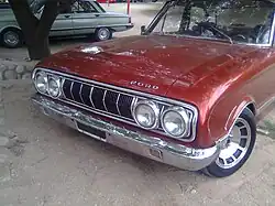 The first restyle of the Falcon came in 1963 and was produced until 1965. The Falcon now had a horizontal aluminum grill. New models included the Taxi model in 1964, and the more powerful Futura in 1965, with a vinyl roof and bucket seats. The first Futura left the production line on 4 December 1964.[6] A larger and more powerful 187 cu in (3,060 cc) engine was added with the Futura, offering 116 hp (87 kW). More parts were manufactured locally.[7] In 1965, the Falcon became the best seller in the Argentinian market for the first time, reaching an 11.6% share of the market.[6]