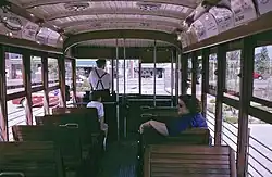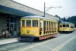 In addition, an open streetcar built by the J. G. Brill Company in 1908 was acquired from the Texas Transportation Museum (in San Antonio, Texas) in 1995. It is ex-Veracruz, Mexico, No. 6.[1][18] The Fort Smith and Veracruz cars are all single-truck cars, but in 1992 FSSRA acquired the body of Hot Springs Street Railway Company car 50 (St. Louis Car Company, 1904), a double-truck car which once operated in Hot Springs.[5] The organization subsequently acquired trucks and motors for the car, and began working on restoring it to operating condition,[10] a goal that was reached in 2016. Another Birney car in the collection is ex-Kansas City 1545, built in 1919.[1]