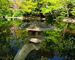 The Fort Worth Japanese Garden is a 7.5-acre (3.0 ha) Japanese Garden in the Fort Worth Botanic Garden. The garden is built on the site of a former gravel pit used as a dumping ground. In 1968, Kingsley K. Wu, a graduate of the University of Tokyo and a professor at Texas Women's University, was hired to finalize the design. Dedicated in 1973, the garden features many plants and construction materials donated by Fort Worth's sister city Nagaoka, Japan. The main gate was designed by Albert Komatsu and Associates (Komatsu, Inc.) and dedicated in 1976. The garden hosts two annual events, the Spring Festival and the Fall Festival, featuring demonstrations of Japanese art and culture. [1][2][3][4][5]
