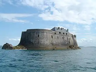 Fort de la Conchée is a fortification on the rocky island of Quincé, four kilometers north-west of St Malo, France. Constructed by Sébastien Vauban the fort covers almost the entire island. The fortress consists of a service building built on high, thick granite masonry walls two stories high. An oval upper terrace with embrasures facing the open sea served as the fort's site for the fort's battery. Today, the fort is a nature reserve for seabirds.