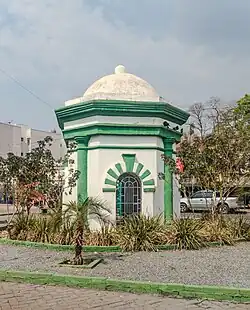 The Fountain of Mundéu (Portuguese: Chafariz do Mundéu), originally known as the Fountain of the Largo da Conceição (Portuguese: Chafariz do Largo da Conceição), is a public fountain in Cuiabá, Mato Grosso, Brazil. The fountain takes its name from the Largo do Mundéu, the original name of Praça Bispo Dom José. It was commissioned by Francisco José Cardoso Júnior, president of the Mato Grosso, who recognized the need for a steady water supply in Cuiabá. Francisco Nunes da Cunha, a military engineer, designed the fountain and its associated water system. The fountain was built in a late, eclectic, Neoclassical style, and is one of numerous Neoclassical buildings in the Historic Center of Cuiabá. It was deactivated in 1910 but retained to store gardening equipment for the plaza. The fountain was photographed shortly after its construction, and retains its original structure and architectural details. It was listed as a state-level listed historic structure by Mato Grosso in 1980, and restored by the state of Mato Grosso in 2006.[1][2]