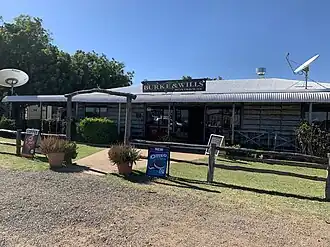 The Burke and Wills Roadhouse at the Burke and Wills Junction where the "four ways" meet (19°13′38″S 140°20′51″E / 19.2272°S 140.3476°E / -19.2272; 140.3476 (29 October 2020)) is a popular stopping place on these long road routes. It has basic accommodation, meals, fuel, groceries and souvenirs.[9][10]
