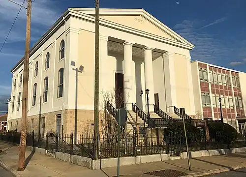 Fourth Baptist Church is a Baptist church located in Richmond, Virginia. It was built in 1884, and is a three-story, Greek Revival style stuccoed brick structure. It features a distyle portico in antis elevated on a high podium. It consists of two unfluted Doric order columns and paired pilasters supporting a Doric entablature. Attached to the church is a Sunday School building erected in 1964.[3]