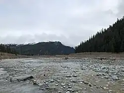 The Fourth of July Creek is a creek on the Kenai Peninsula in Alaska. It rises on the upper Resurrection Peninsula from various glaciers on Santa Ana Peak in the Chugach Mountains and flows 5 miles (8.0 km) to empty into Resurrection Bay near Seward.[1][2] Fourth of July Creek formed some time after 1850, when Godwin Glacier retreated from the shores of Resurrection Bay, uncovering the stream and the broad valley it flows through.[3] The creek was formerly known as the Godwin River, before the aforementioned glacier split into two valleys creating a separate tributary of the waterway, today known as Godwin Creek.[4]