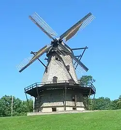Named after eccentric businessman Colonel George Fabyan, it is south of Geneva. On the east side, the trail passes a "Dutch" style windmill from the 1850s that was moved to the river site and refurbished in 1914. The trail can cross the river on a small island with a lighthouse built as a joke. The west side of the preserve has a Frank Lloyd Wright designed "Villa", gardens, greenhouses, pools, and other attractions.[6][7][8]
