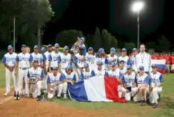 The French National Baseball team represents the French Federation of Baseball and Softball in international competitions, such as the World Baseball Classic, the European Baseball Championship, and the World Cup of Baseball. They are currently ranked 21st in the world.[1]