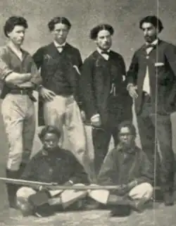 Frank Jardine (standing third from left) with his brothers and Native Police troopers