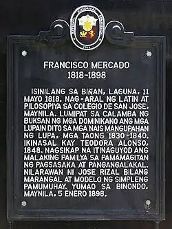 - ^ "Today in Philippine History, June 28, 1848, Francisco Mercado and Teodora Alonso got married". The Kahimyang Project. Retrieved March 5, 2021.