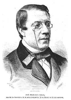 Francisco Salas was born in Albaicín during its siege by the French. His father died the same year he was born. Thus, the boy had to work hard from early age. A famous tenor Lorenzo Valencia from Madrid came to Granada to sing in some operas, especially those by Rossini. He became Salas's first teacher and protector. In 1829 they went to Madrid, where the seventeen-year-old entered the choir of Teatro de la Cruz. There he studied with José Reart and tenor José Valero.