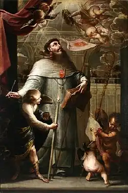 He painted at many of the convents in Madrid, which provided for connections that brought commissions from outside the area; including the Franciscans in Viana and the Dominicans in Villanueva de los Infantes.[1] In 1675, he painted the Annunciation for the convent of the Discalced Carmelites in Boadilla del Monte, where his daughter, Petronila, took her vows.[3] He also did paintings for the chapel of the Convento de Copacabana.[1]
