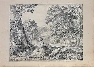 Franciscus II is now mainly known for his altarpieces and mythological scenes although he also painted portraits. He also had a reputation as a landscape painter and his mythological scenes often include extensive landscapes in a style reminiscent of Claude Lorrain. An example is Narcissus and Echo (Christ Church, University of Oxford). The painter was already at the time of his stay in Rome known for his Roman landscapes and in particular for his detailed rendering of trees and foliage. Most of his landscapes are known only as engravings, few in their original oil version. A large number of small, unsigned landscapes has been handed down almost exclusively in engravings, which were made by Giovanni Giacomo de Rossi alla Pace in the 1660s in Rome. They found wide circulation and were already present in early collections.[1]