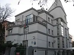 House at 30 Francuska Street – a multi-family house from around 1938 designed by Stefan Putowski and Tadeusz Kaszubski.[17] In 2009 and 2011, the building was taken over by Marek Mossakowski[46] based on reprivatization decisions.[47][48][49] At that time, there were 12 residents.[24]