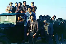 A snapshot from director John Korty's "Farewell to Manzanar." Chin is in the foreground, with Lawson Inada directly behind.