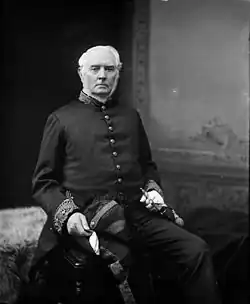 Originally a supporter of the Reform movement that evolved in the Liberal Party, Sir John A. Macdonald persuaded him to switch his allegiance to the Conservatives and organize support for the Tories among the Irish Catholic community. In 1871, he was appointed to the Senate of Canada as a Liberal-Conservative and served in Sir John A. Macdonald's cabinet from 1882 to 1891 as minister without portfolio. He continued in the cabinet when Sir John Joseph Caldwell Abbott became prime ministare and served as Minister of Public Works, and Controller of Customs (Acting) from 1891 to 1892 following the resignation of Sir Hector-Louis Langevin. Due to age and poor health he declined to continue in cabinet when Sir John Sparrow David Thompson became prime minister in 1892. Following Thompson's death in December 1892, Governor General Lord Aberdeen invited Smith to become prime minister but he declined. He agreed, however, to return to cabinet as a minister without portfolio under Mackenzie Bowell and then Sir Charles Tupper until the Conservatives were defeated in the 1896 federal election.[2]