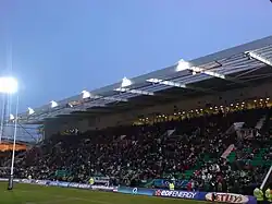 The old South Stand was a temporary stand made with a steel beam construction and was half-covered. It came about as a temporary solution to the increasing interest in rugby union as a spectator sport in the mid-1990s. It wrapped around from the south corner of the Gordon Terrace to the end of the Members Stand. Usually, it was dismantled during the summer and placed into storage until the beginning of the next season.
