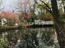 The construction of the Delaware and Raritan Canal in the 1830s, stretching 22 miles (35 km) to connect New York City and Philadelphia, led to significant growth in the township, with as much as 200,000 tons of goods shipped on barges using the canal by the 1860s. The rise of shipping commercial goods using railroads led to a substantial decline in canal traffic.[34] The area has been restored as the Delaware and Raritan Canal State Park[35]