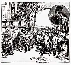 A lithograph showing a scene from Šubert's drama Jan Výrava