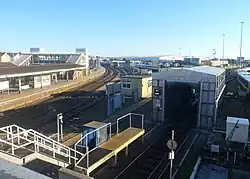 Between 1885 and 1914, a separate island platform at Fratton station served as the interchange platform to the short-lived Southsea Railway branchline. The island was accessed from a staircase built on the south-east side of the main footbridge.[7] This island was demolished after the Southsea Railway was closed. A modern train washing machine structure is now located on the site.