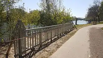 Parts of the bridge railing are set to be used along the nearby lakeside path in Grimnitzseepark by the Havel.[27]