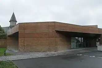 The cemetery construction contract was awarded to Beton-Bouw Bentein BVBA. This company, which was founded in 1921, helped to rebuild Flanders after the war, and had previous experience working with the commission.[14] Before construction could begin, the area had to be checked by the French authorities for ordnance and other materiel left from the war. This was done in April 2009, and though no unexploded munitions were found, other wartime debris was cleared from the area, including barbed wire and shell cases.[18] Construction proper began in May 2009, with the site being levelled in preparation for the laying of the foundations, while temporary hoardings were put up to enclose the site.[19]