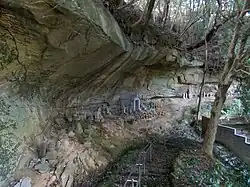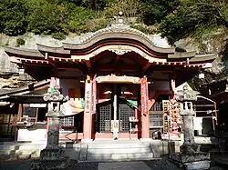 The cave of mount Fukuishi is a huge cave of sandstone made by erosion of water with a mouth of approximately 60 centimeters and it is the height of 4 meters. According to the temple story, in the early 9th century, Kūkai, a monk who was beloved Gyōki, died on February 2, 749. He enshrined 500 arhat statues in the cave. Many rakan statues disappeared in the long history after that, Matsuura Seizan of the 9th lord who helped rebuild the temple in 1788. Many of them were dissipated after the World War II and now only 142 bodies have been left.[1]