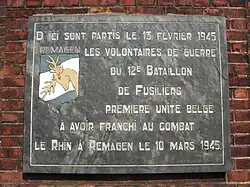 Plaque commemorating the 12th Fusilier Battalion which participated in the Battle of Remagen in March 1945