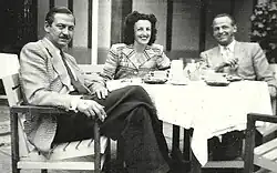 ![]() Carlier (left) with Irène Élisabeth Reinert and Joe Hajos | |