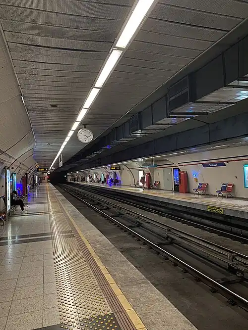 Göztepe is an underground station on the M1 Line of the İzmir Metro in Göztepe, Konak. Located under İnönü Avenue, it consists of two side platforms servicing two tracks. Connection to ESHOT bus service is available at street level.
