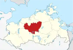 Güstrow (German pronunciation: [ˈɡʏstʁoː] ⓘ) is a former district in Mecklenburg-Vorpommern, Germany. It was bounded by (from the north and clockwise) the districts of Bad Doberan, Nordvorpommern, Demmin, Müritz, Parchim and Nordwestmecklenburg. The district was disbanded at the district reform of September 2011. Its territory has been part of the district of Rostock since.