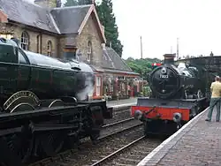 The locomotive was purchased by the Erlestoke Manor Fund in June 1973. It was moved from Barry to a temporary home at the Dowty Railway Preservation Society, Ashchurch in May 1974, pending an eventual move to the Dean Forest Railway. However in 1976 Fund members approved a move to the Severn Valley Railway instead, where restoration was completed and the locomotive entered service in 1979.[2] Withdrawn in 1985, it returned to service on 12 February 2008, as part of the SVR's anniversary reopening train.