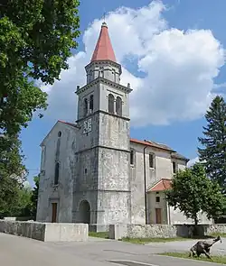 The parish church in the settlement is dedicated to Saint Peter and belongs to the Diocese of Koper.[3] It was built in the Baroque style. A plaque over the door has the year 1780 on it.[4]