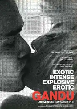 Gandu is a 2010 Indian erotic black-and-white art drama film directed by Qaushiq Mukherjee.[1] It features Anubrata Basu, Joyraj Bhattacharjee, Kamalika Banerjee, Silajit Majumder, and Rii Sen in the lead roles. The film's music is by the alternative rock band Five Little Indians.[2] Gandu previewed at Yale University before making its international premiere on 29 October 2010 at the 2010 South Asian International Film Festival in New York City.[1] Gandu was an official selection at the 2011 Berlin International Film Festival and was also screened at the Slamdance Film Festival.[3]