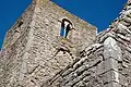 The stone church structure consists of a chancel, nave and tower. The tower rests on the west wall of the nave. The tower was presumably built in the late 13th century. The church was presumably abandoned as early as in the 16th century. The chancel and arch contain mural paintings. The church grounds and gardens were preserved in 1924 and are now a tourist destination.[4][5][6]