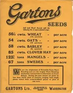 - ^ Gartons Headquarters Plant Breeding Grounds in Cheshire, from The Warrington Examiner 4 April 1931.