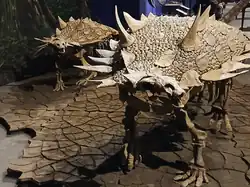In the late twentieth century a skeleton was mounted made of polyurethane casts of skeletal elements of various individuals. Distortions in the fossils were corrected and missing elements completed. This made Gastonia the first basal ankylosaurian dinosaur to have been mounted for display at the Denver Museum of Nature and Science, together with the related Gargoyleosaurus.[8]