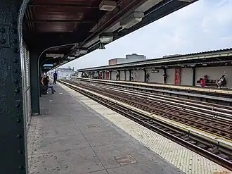 South of this station, the BMT Jamaica Line connected to the BMT Lexington Avenue Line before it ceased operation on October 13, 1950 and some remains are visible. The next stop on the Lexington Avenue El was Reid Avenue on its way to Downtown Brooklyn and Park Row, Manhattan.