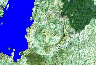 The Gedamsa Caldera is a 7 x 9 km caldera in the Main Ethiopian Rift valley. The caldera has steep sides with 100–200 metres (328–656 ft) high walls, the upper parts of which consist predominantly of rhyolitic lava flows deposited in a series of trachite ignimbrite eruptions. There are small basaltic spatter cones and fumarolic activity inside the caldera floor along with a series of (Late Pleistocene to Holocene) rhyolite and pumice deposits and a Holocene lava dome/flow.[1]
