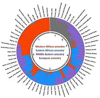 - ^ Kulichova I, et al. (2017). "Internal diversification of non-Sub-Saharan haplogroups in Sahelian populations and the spread of pastoralism beyond the Sahara". American Journal of Biological Anthropology. 164 (2): 424–434. doi:10.1002/ajpa.23285. PMID 28736914.