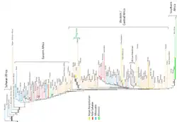 32. ^ Mendez, Fernando L.; et al. (7 March 2013). "An African American Paternal Lineage Adds an Extremely Ancient Root to the Human Y Chromosome Phylogenetic Tree". American Journal of Human Genetics. 92 (3): 454–459. doi:10.1016/j.ajhg.2013.02.002. PMC 3591855. PMID 23453668. S2CID 16611039.