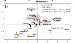 38. ^ a b Stefflova, Klara; et al. (January 6, 2011). "Dissecting the Within-Africa Ancestry of Populations of African Descent in the Americas". PLOS ONE. 6 (1): e14495. Bibcode:2011PLoSO...614495S. doi:10.1371/journal.pone.0014495. ISSN 1932-6203. OCLC 8091520981. PMC 3017210. PMID 21253579. S2CID 9792013.