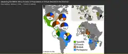 46. ^ a b c d e f Mathias, Rasika Ann; et al. (11 October 2016). "A continuum of admixture in the Western Hemisphere revealed by the African Diaspora genome". Nature Communications. 7 (12522) 12522. Bibcode:2016NatCo...712522M. doi:10.1038/ncomms12522. PMC 5062574. PMID 27725671. S2CID 11070628.